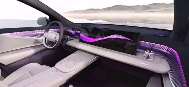 不过内饰部分,这台日产NX8并没有使用和日产N6/N7相似的风格,整体呈现的氛围明显要更高级一些。具体来看,其内饰采用怀抱式设计,中控台有着很强的层次感,比较惹眼的就是悬浮式液晶表盘以及多媒体和副驾组成的连体屏设计,从门板一直贯穿中控台的氛围灯进一步拉高了内饰的档次感。