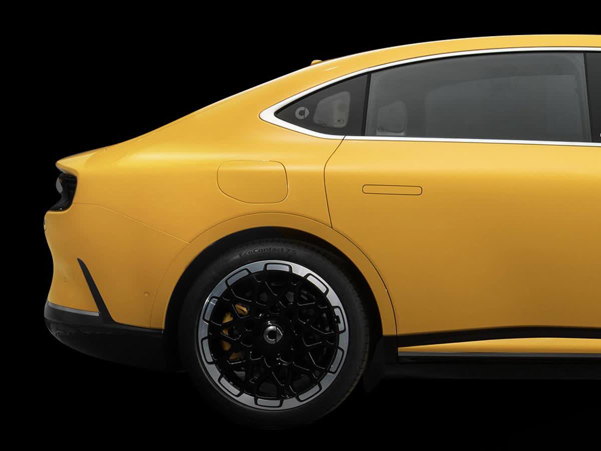 车身侧面造型简洁流畅,使用了无框式的车门,车门把手为隐藏式,车身下包围带有黑色的贯穿式饰条。尺寸方面,新车的长宽高分别为4906/1922/1508mm,轴距为2926mm。